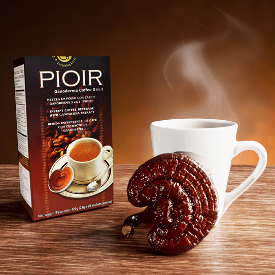 Pioir café 3 en 1 es una fusión del más selecto café gourmet y extracto de las seis variedades más poderosas de Ganoderma Lucidum, junto a una crema especial no láctea, consiguen una armonía de aroma y sabor en una deliciosa bebida.